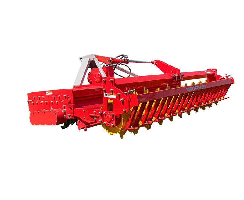 該機具主要用于旋耕整地作業(yè),農(nóng)藝順序為旋耕-旋耕-鎮(zhèn)壓-拖平。專利設(shè)計,合理利用刀軸外端二次動力傳輸,帶動后刀軸工作,達到二次粉碎。機械傳動環(huán)節(jié)少,有效節(jié)省了拖拉機的馬力消耗。一遍頂兩遍的作業(yè)模式,大大提高工作效率。前刀軸和后刀軸連續(xù)作業(yè),拖板鎮(zhèn)壓拖平,提高作業(yè)質(zhì)量。