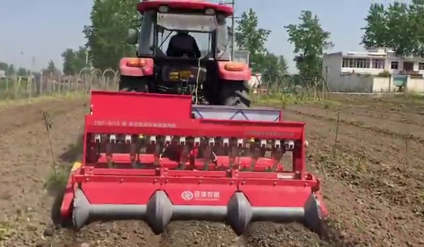 機(jī)具組裝好后,用戶開著拖拉機(jī),帶著種子,開始到田間耕種。