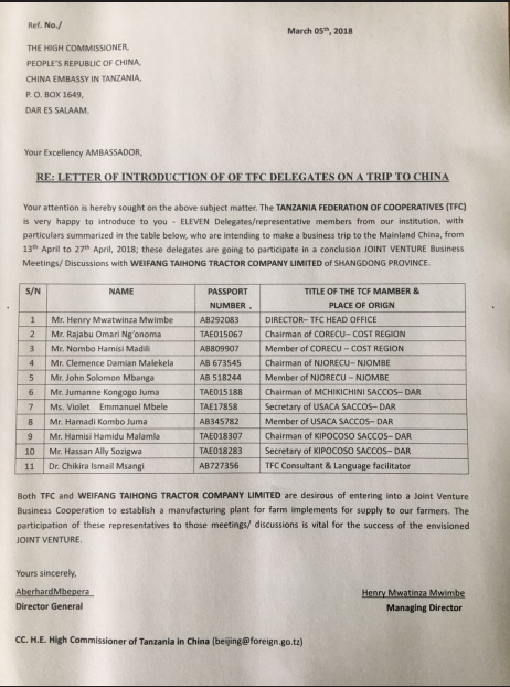 2018年4月20日上午,坦桑尼亞合作社(TFC)聯(lián)合會(huì)成員一行11人受邀蒞臨亞澳農(nóng)機(jī)考察農(nóng)業(yè)合作項(xiàng)目。唐河縣政府領(lǐng)導(dǎo)狄付長、縣農(nóng)機(jī)局方振副局長及亞澳農(nóng)機(jī)史炳哲總經(jīng)理全程陪同。