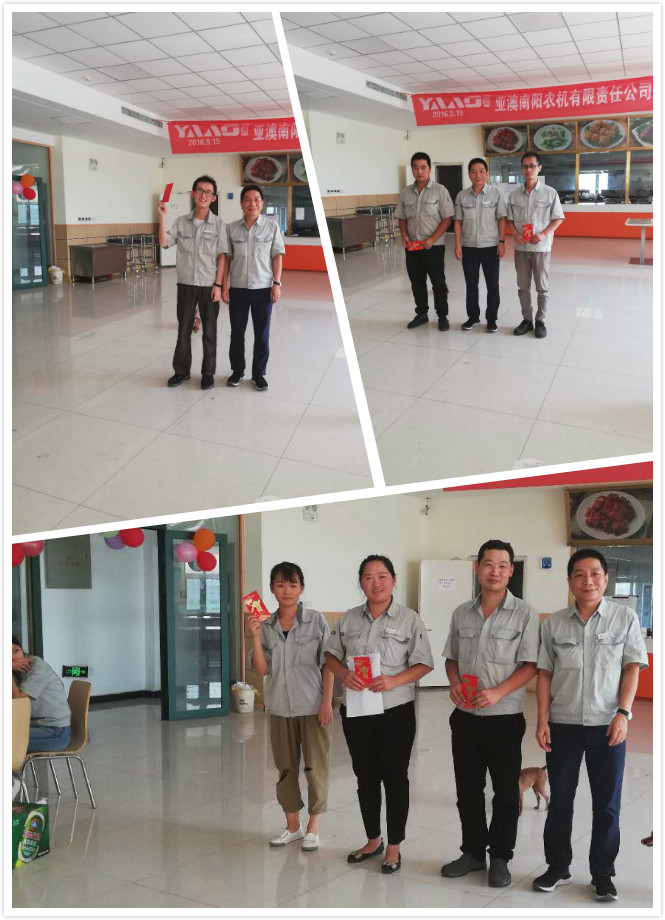 中秋佳節(jié)至,周年慶歡喜。2018923日,亞澳南陽農(nóng)機(jī)有限責(zé)任公司開業(yè)兩周年慶典暨歡度中秋佳節(jié)活動(dòng)在公司餐廳隆重舉行,因當(dāng)天有生產(chǎn)任務(wù),在不耽誤生產(chǎn)及各部門班組的全力配合下,慶典活動(dòng)在中午12:00順利開始。