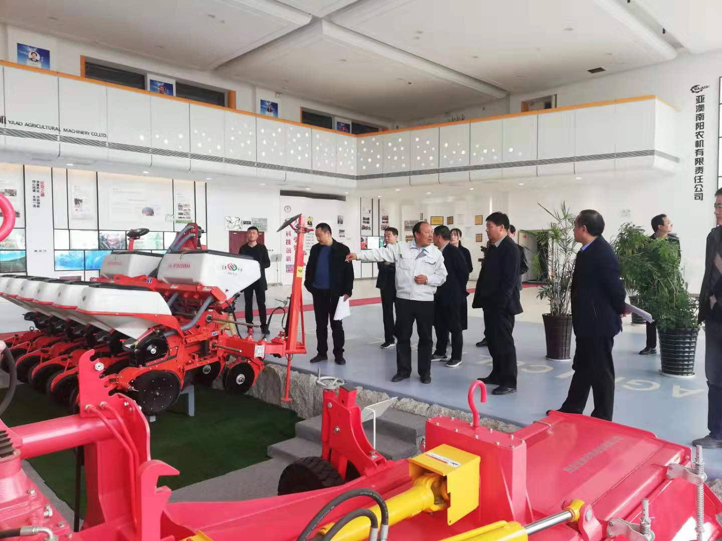 20191119日上午,南陽市市委辦副主任趙玉云攜市發(fā)改委副調(diào)研員馬秋柏等一行在唐河縣工信局領(lǐng)導的陪同下蒞臨亞澳農(nóng)機視察亞大型復式旋耕機智能制造新模式項目發(fā)展建設情況。