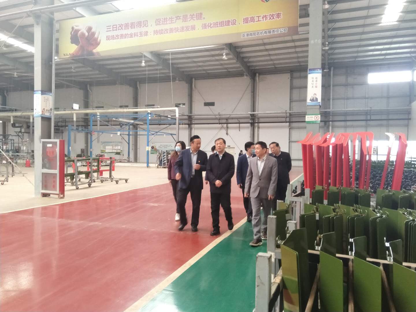 考察團(tuán)一行參觀了亞澳南陽農(nóng)機(jī)的產(chǎn)品展廳、焊接機(jī)器人生產(chǎn)線、研發(fā)實(shí)驗(yàn)室等,對(duì)亞澳農(nóng)機(jī)研發(fā)、生產(chǎn)、營(yíng)銷、售后全產(chǎn)業(yè)鏈模式給予高度評(píng)價(jià),一致認(rèn)為,亞澳農(nóng)機(jī)專注做農(nóng)業(yè)耕播機(jī)具,今后進(jìn)一步利用公司的優(yōu)勢(shì)資源,打好研發(fā)和產(chǎn)品這兩張牌,發(fā)揮好龍頭企業(yè)示范、引領(lǐng)作用。