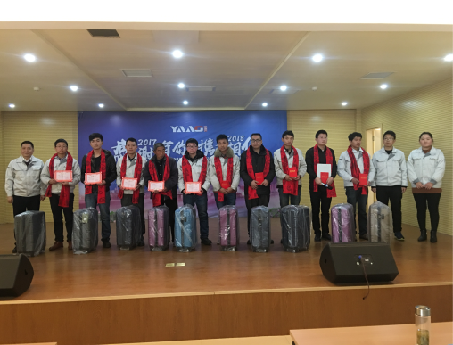 年度先進(jìn)個(gè)人獲得者為石強(qiáng)、陳朝龍、王文飛、王欣、楊常林、寧浩、鄭新春、田生文、白拴禮、趙自學(xué),優(yōu)秀班組長(zhǎng)周長(zhǎng)金,獎(jiǎng)品Aksen旅行箱