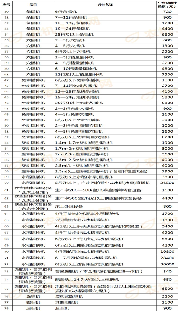 "備注:對(duì)穴播機(jī)品目先按排種器形式分檔,其中精量排種器包括氣力式和達(dá)到精量要求的指夾式,其他列為普通型式;